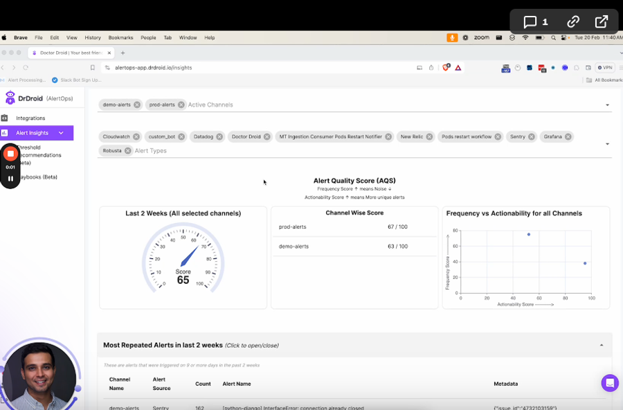 PagerDuty’s integration with Doctor Droid and Slack allows teams to receive real-time insights and recommendations directly in their Slack channels. Doctor Droid can alert teams about recurring patterns of alert noise, providing actionable insights in a user-friendly format.