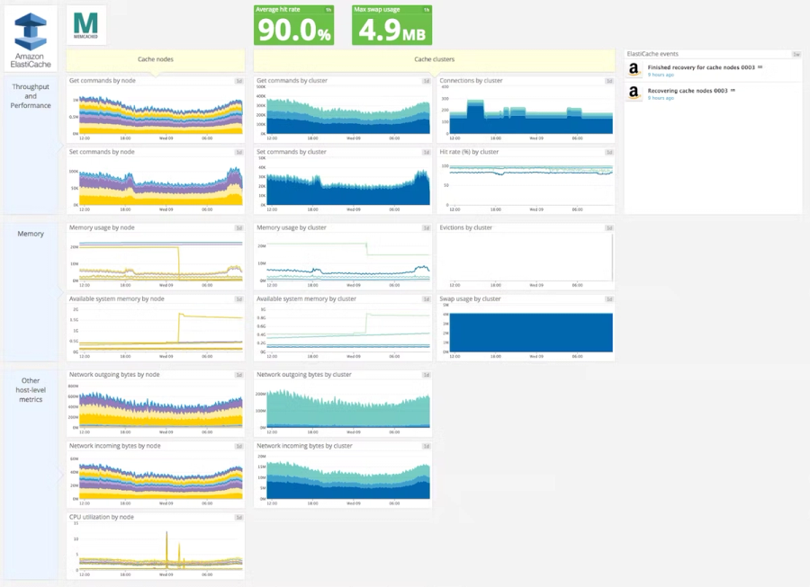 Datadog offers advanced monitoring for ElastiCache with custom dashboards and highly flexible alerting options. It enables real-time tracking of key metrics, detailed visualizations, and quick identification of performance issues. By integrating Datadog with ElastiCache, you can gain deeper insights into your caching environment and respond faster to emerging issues.