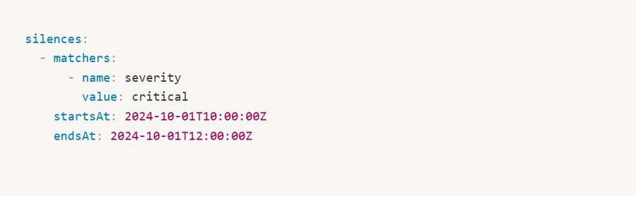 Example configuration for silencing alerts for a specific time range