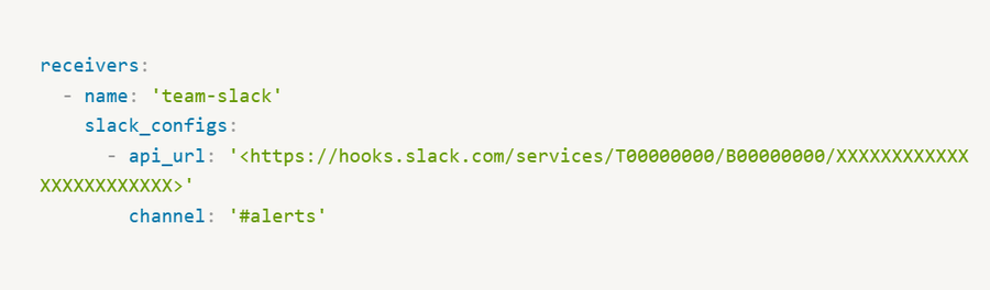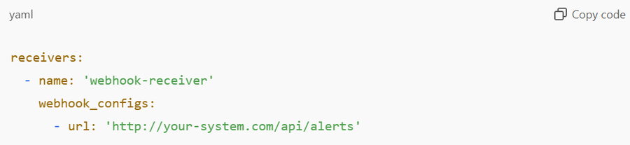 - Alerts can be sent to different receivers, including Slack, email, or webhook endpoints.