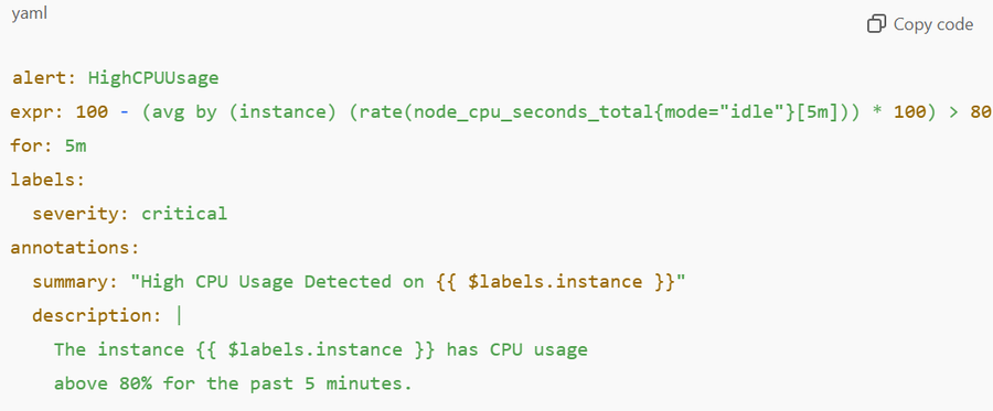 Example of a CPU usage alert rule: