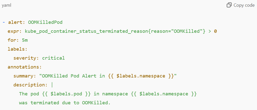 Setting up Alerts for OOMKilled in Kubernetes using Prometheus