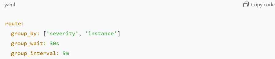 Example: Grouping alerts by severity and instance for better organization:
