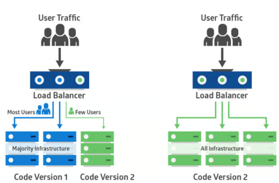 - Implementation: Typically, a small percentage of traffic is routed to the new version, while the majority of users continue to use the existing stable version. If no issues are detected, the deployment is gradually expanded to the entire user base.