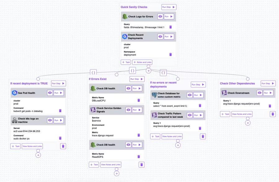 Logs, metrics, traces, and configs analyzed together for instant root-cause clarity. - Step-by-step Runbooks
