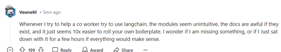 - LangChain's documentation lacks depth and clarity.