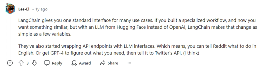 - LangChain’s design allows easy swapping of components, enabling quick customization and scalability as project needs change.
