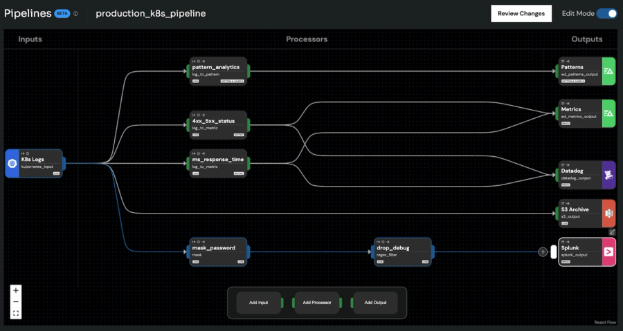 - PII Redactions at Source: Observability pipelines minimize the risk of sensitive data leaks by implementing routing and filtering logic at the source. With configurable UIs or code to set up these rules, pipelines ensure compliance with data protection regulations by effectively managing data Privacy.
