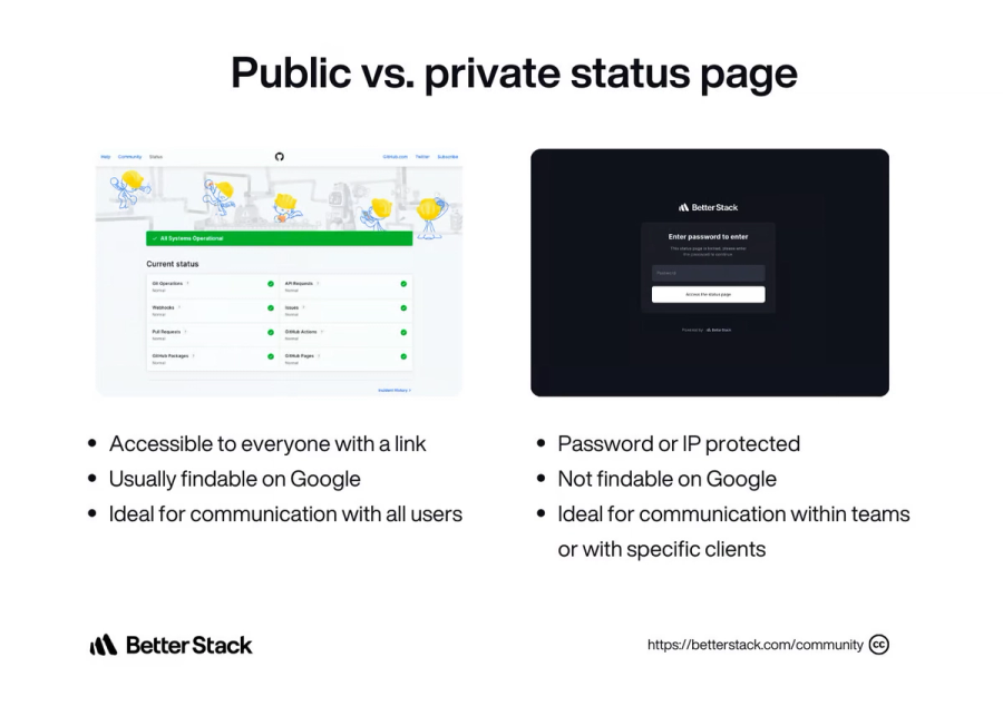 Without a status page, users are a bit anxious about “why isn’t the product working?” and might end up reaching on multiple forums -- from support chats to social media, waiting for companies to tell them (push based strategy). But with a status page, users can go and check the “status” if there’s any known impact across any of the company’s services (pull based strategy).