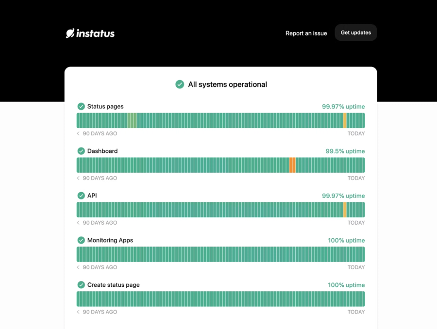 Instatus offers easy-to-use status pages with minimal setup requirements.