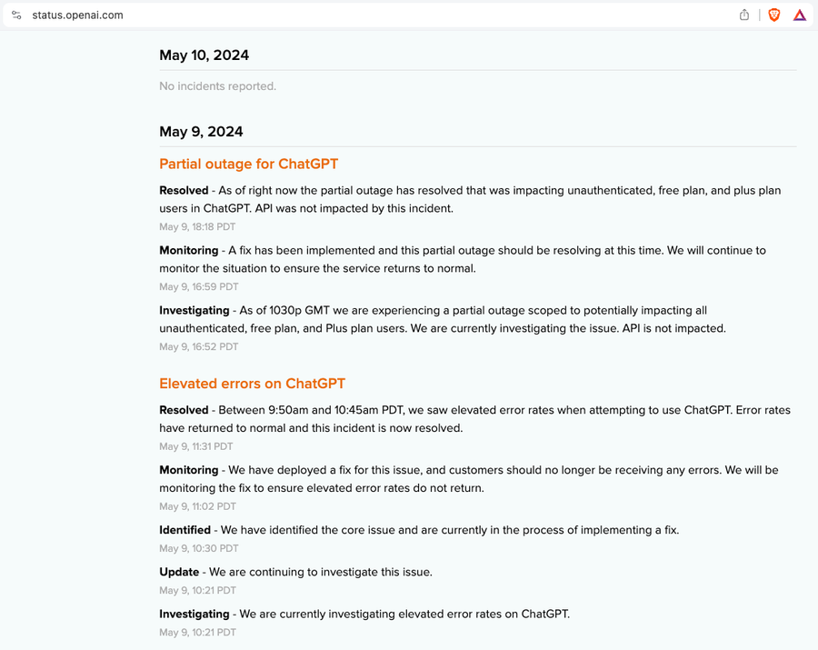 Statuspage.io is a leader in status and incident communication. It has become a norm in the industry, from Cloudflare to OpenAI status pages.