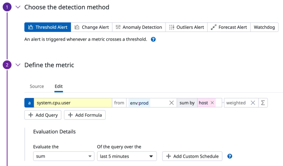 - Threshold Alerts: You can create threshold-based alerts, which trigger when a specific metric crosses a defined threshold (e.g., when CPU usage exceeds 80%).