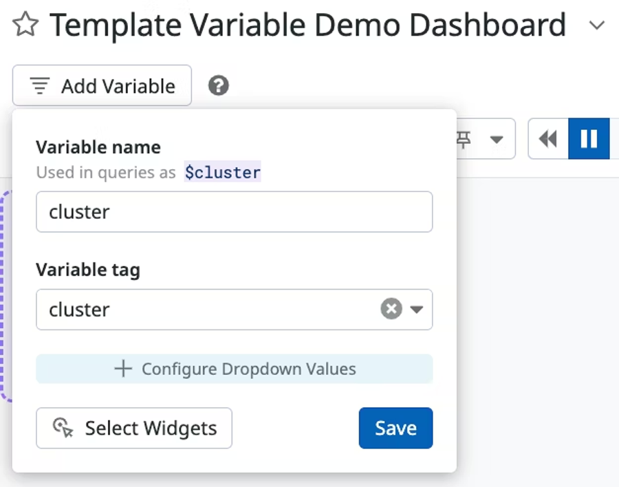 To add a template variable to a dashboard: