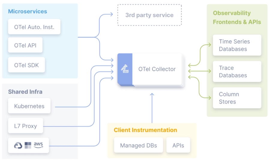 Example: A custom e-commerce platform can use OpenTelemetry to track transaction metrics, log errors, and trace API calls across services, all of which can be visualized in Grafana for comprehensive monitoring.